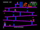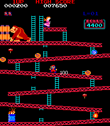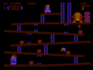 In the first screen, Donkey Kong throws barrels at Mario, some of which can turn into living fireballs. Mario must avoid or smash both as he makes his way to the top.