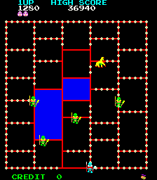 In every odd screen, you must help a hungry gorilla collect all the coconuts while avoiding six warriors out on patrol.