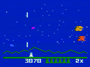 Rocks drop from the sky, ready to flatten your laser base. The more you vaporize, the higher your score... but the more you let fall to the ground, the more points you lose!